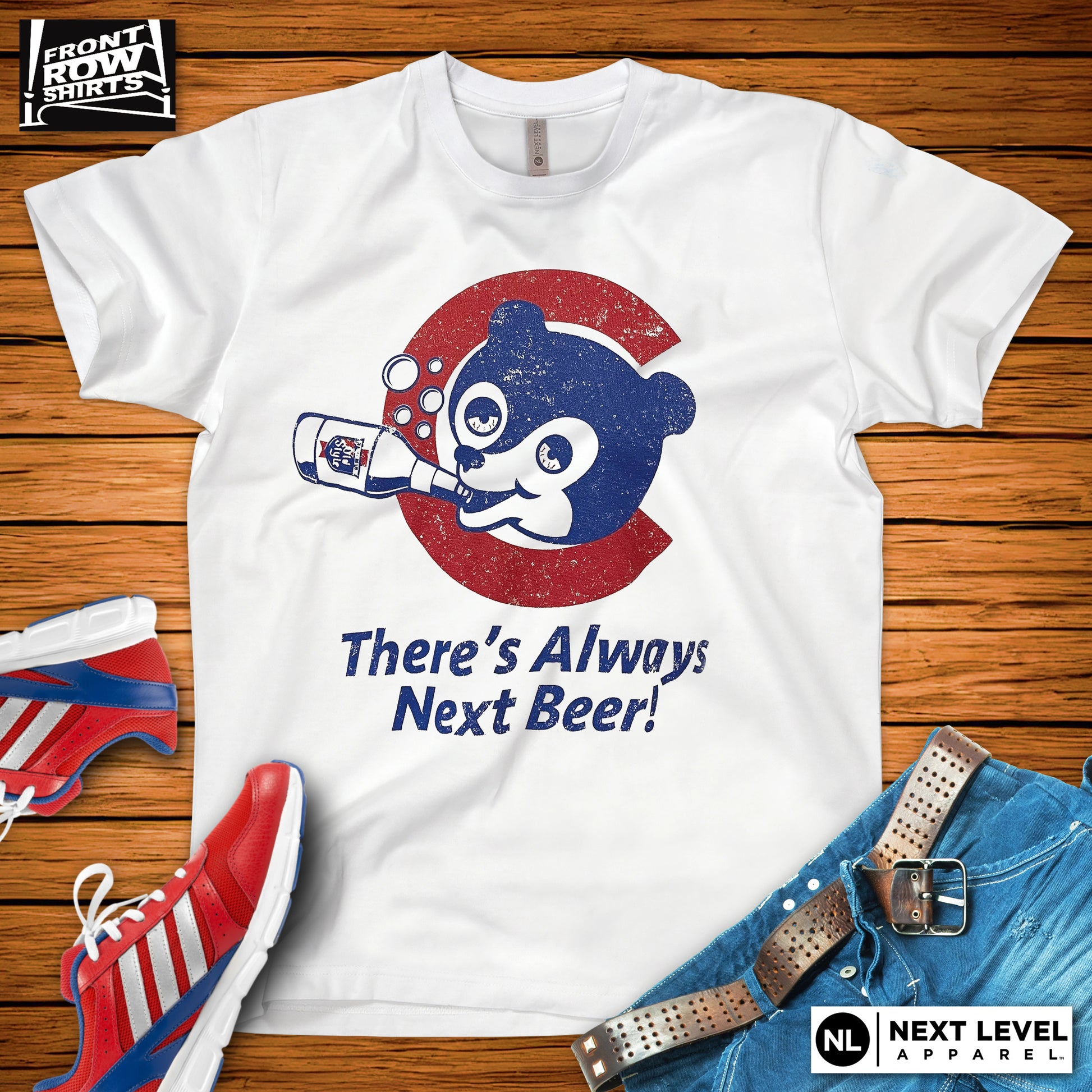 Chicago Cubby Bear "There's Always Next Beer" ringer tee features a high-quality silk screen print all Chicago Cubs fans will love. Made with ringspun cotton from Next Level brand, this retro shirt offers a comfortable fit and embraces the spirit of Wrigley.
